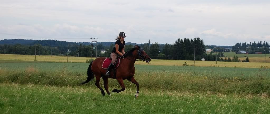 Eilen tehtiin Veikan kanssa käynnissä pysähdyksiä ja peruutuksia, ravissa tempon lisäyksiä ja lopuksi kuunteli tosi hyvin ! Laukka vaikeampaan suuntaan vähän hankalaa (?) mutta helpompaan suuntaan laukattiin ympyröitä. Meni tosi hyvin ! :)